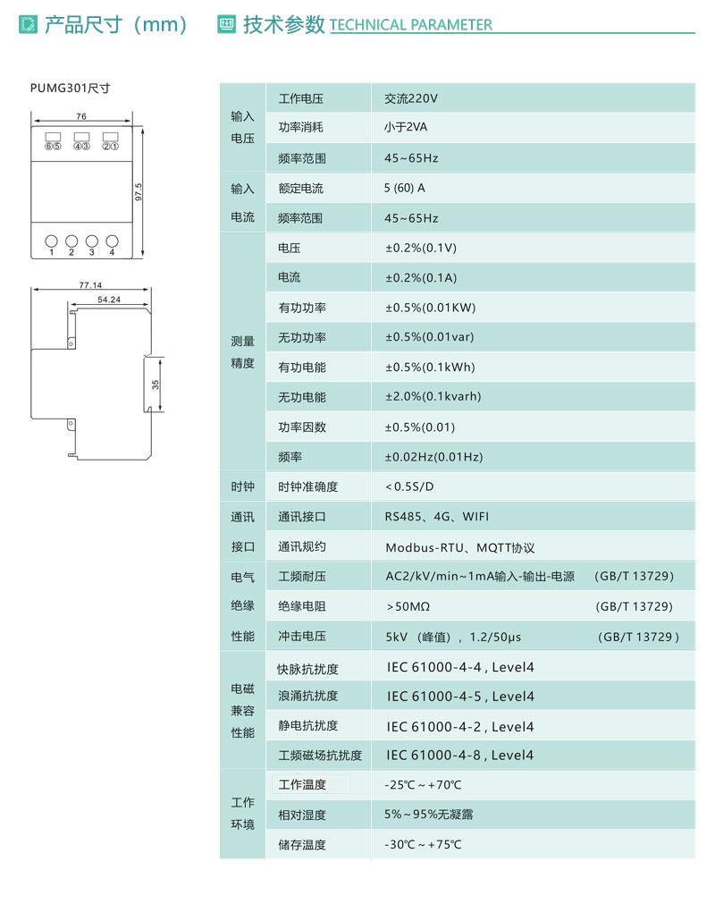 PUMG301單相導(dǎo)軌式智能電能表完全符合國家標(biāo)準(zhǔn)GB/T7215-2008和國際標(biāo)準(zhǔn)IEC62053:2003中對0.5S級電能表的相關(guān)技術(shù)要求,采用微電子技術(shù)和進口專用大規(guī)模集成電路,應(yīng)用數(shù)字采樣處理技術(shù)及SMT工藝等先進的技術(shù),可直接精確地測量額定頻率為50/60Hz的交流有功電能,運用LCD7+1位液晶顯示,具有可靠性高,體積小巧,安裝方便等特點。
