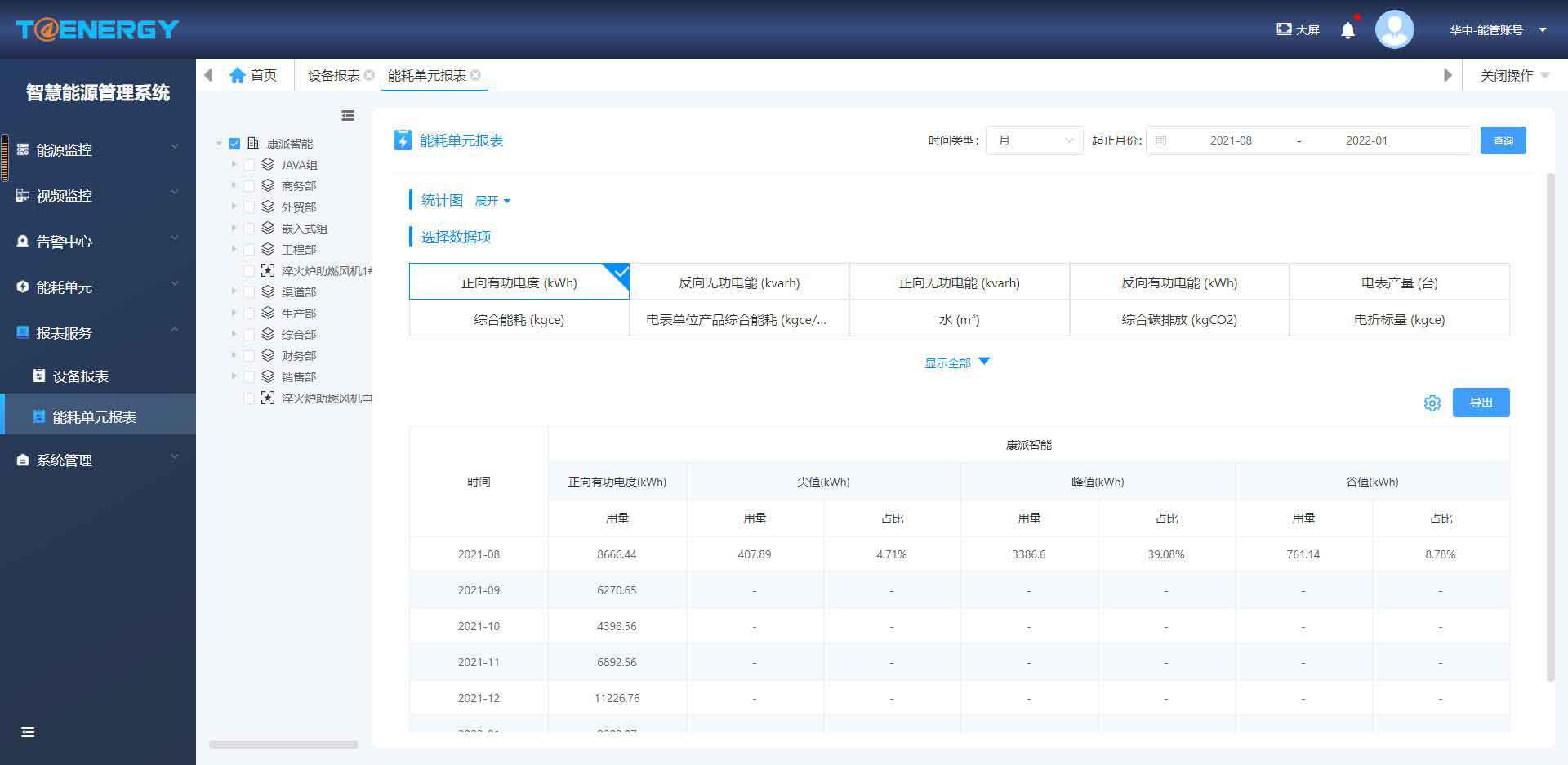 報表包含有日報表、月報表和年報表。通過多樣化的報表服務(wù)滿足生產(chǎn)現(xiàn)場的多種多樣需求。報表設(shè)有打印功能,可定時自動打印或觸發(fā)條件打印,并可導(dǎo)出到excel表格中,顯著減少抄表工作的人力成本,提高用戶的經(jīng)濟(jì)效益。展示單個或者多個能耗單元的多個用量數(shù)據(jù)項并在特定時間段內(nèi)計算其相關(guān)的數(shù)據(jù)項實時值。