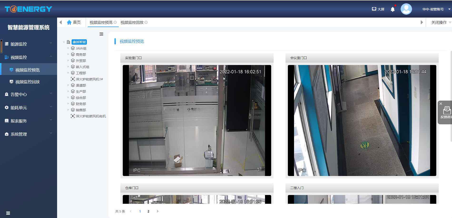 對組織機(jī)構(gòu)下的攝像機(jī)進(jìn)行實時預(yù)覽、視頻回放。多維度掌握設(shè)備運(yùn)行情況,異常侵入可視化避免電氣火災(zāi)和保障用戶人身安全。