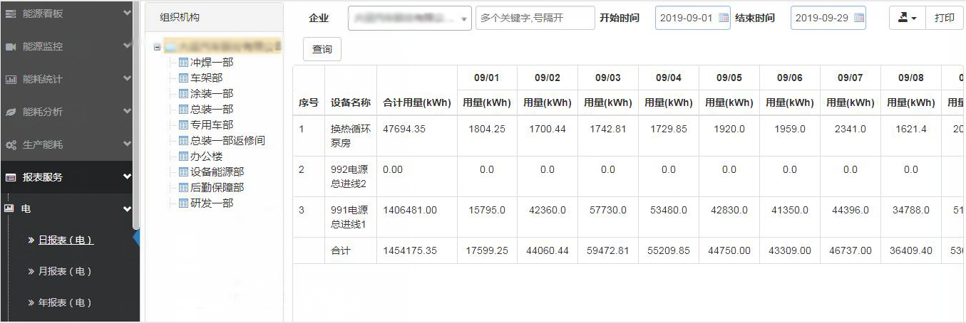 用電數據報表的功能是環保分電監測管理平臺的基礎功能之一,該功能一方面可以降低企業運維人員的壓力,另一方面可以通過報表數據的對比分析,發現環保設備異常的能耗點所在。