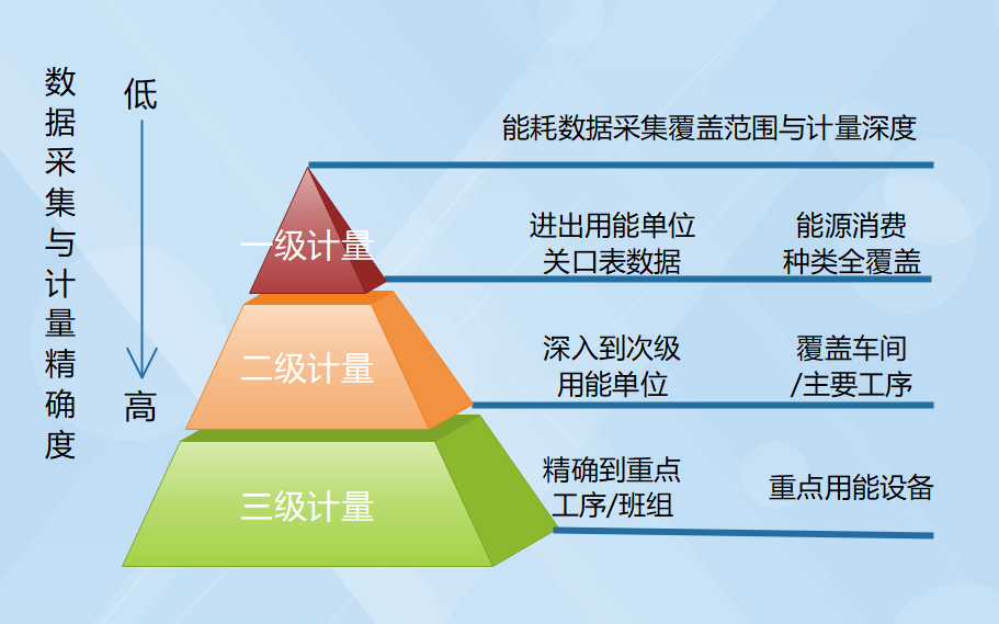 能耗在線監測系統,即生產過程中用能的實時監測,按照能耗級別通常分為三個等級,