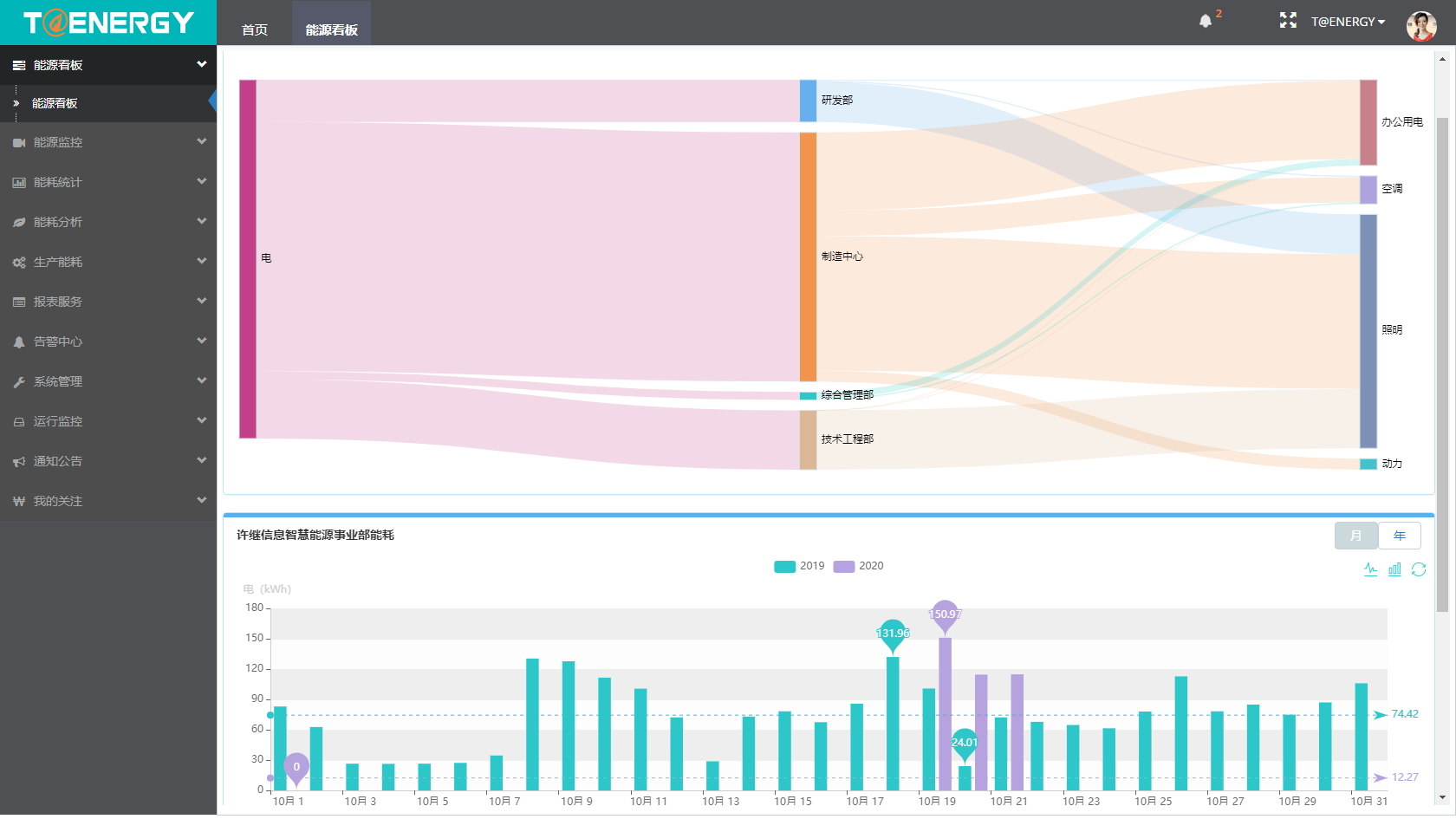 ? 完善工業(yè)企業(yè)的內(nèi)部能效考核,完成能效管理,實現(xiàn)能耗成本統(tǒng)計功能,真正體現(xiàn)“管理處效益”的意義。對于企業(yè)來說,從企業(yè)的用能總量,到個廠房的用能量,以及車間、班組甚至個別能耗設(shè)備的用能量,哪個時段用能量最多、哪個時段電壓最高用電量最大等全都有相應(yīng)的曲線圖。每隔20s,數(shù)據(jù)就會自動更新一次。