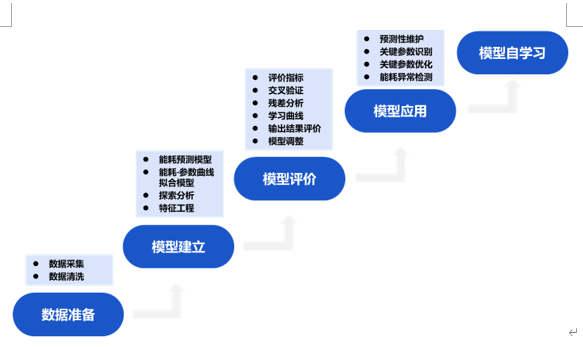 AI的核心是算法和模型的建立,康派智能的能耗預測模型是按照麥肯錫六步法思路進行創建,且已在多個項目有實際應用,并均已獲得良好的評價,康派智能能耗預測模型建立過程主要步驟如下: