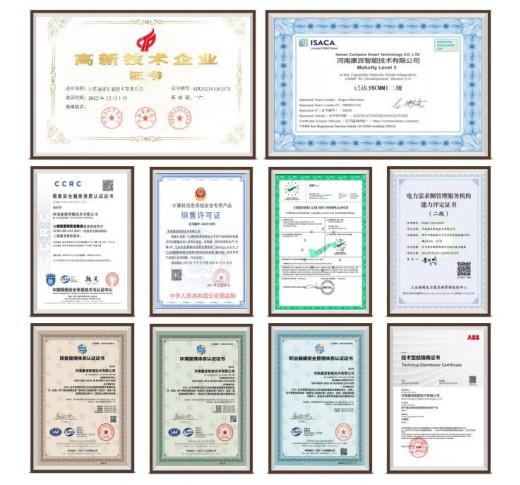 康派智能匯聚優秀人才,擁有高效的嵌入式研發團隊、強大的互聯網軟件開發團隊和營銷服務網絡。生產推行精益管理,具有行業先進的元件生產設備、工藝技術裝備和檢測校驗裝置。公司榮獲CMMI三級認證軟件企業認證和CCRC信息安全服務資質認證和ISO三體系認證,具有百余項軟件著作權、專利及檢測認證,并具備電力工程施工總承包貳級、電子與智能化專業承包貳級及承裝(修、試)電力設施許可證等工程實施資質。