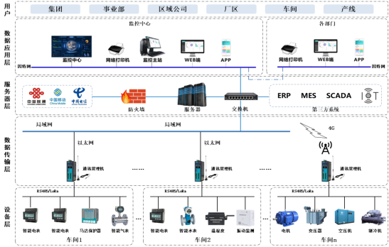 智慧能碳管理平臺,融合“了物聯(lián)網(wǎng)+互聯(lián)網(wǎng)+大數(shù)據(jù)”等技術(shù),對企業(yè)水、電、氣、冷、熱等能源使用狀況管理,及現(xiàn)場壓力、溫濕度、設(shè)備運(yùn)行健康度等參數(shù)實(shí)行集中監(jiān)測、管理和分散控制,實(shí)現(xiàn)不同場景下的能源及碳排放監(jiān)測、分析、管理、評估和預(yù)測,為企業(yè)的節(jié)能降碳、精益能效管理提供數(shù)字化平臺。