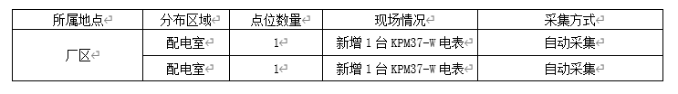 廠區目前有1個雙回路進線的一級電力點位,現場無舊表可以利舊,因此需新增2塊KPM37-W儀表,用于數據的采集。